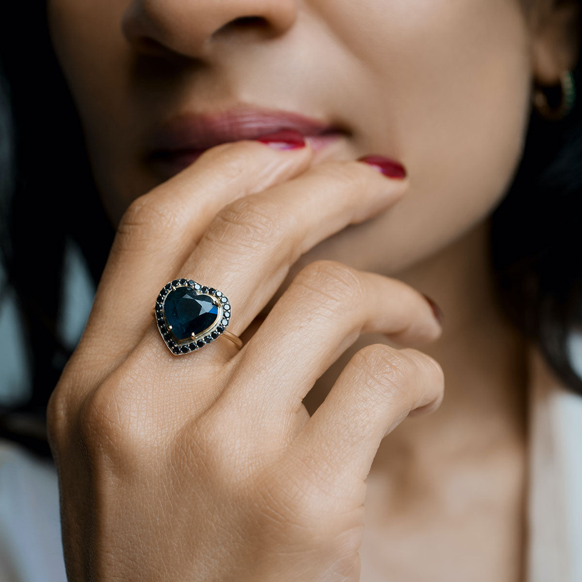 HEART RING | BLUE TOURMALINE & BLACK DIAMOND